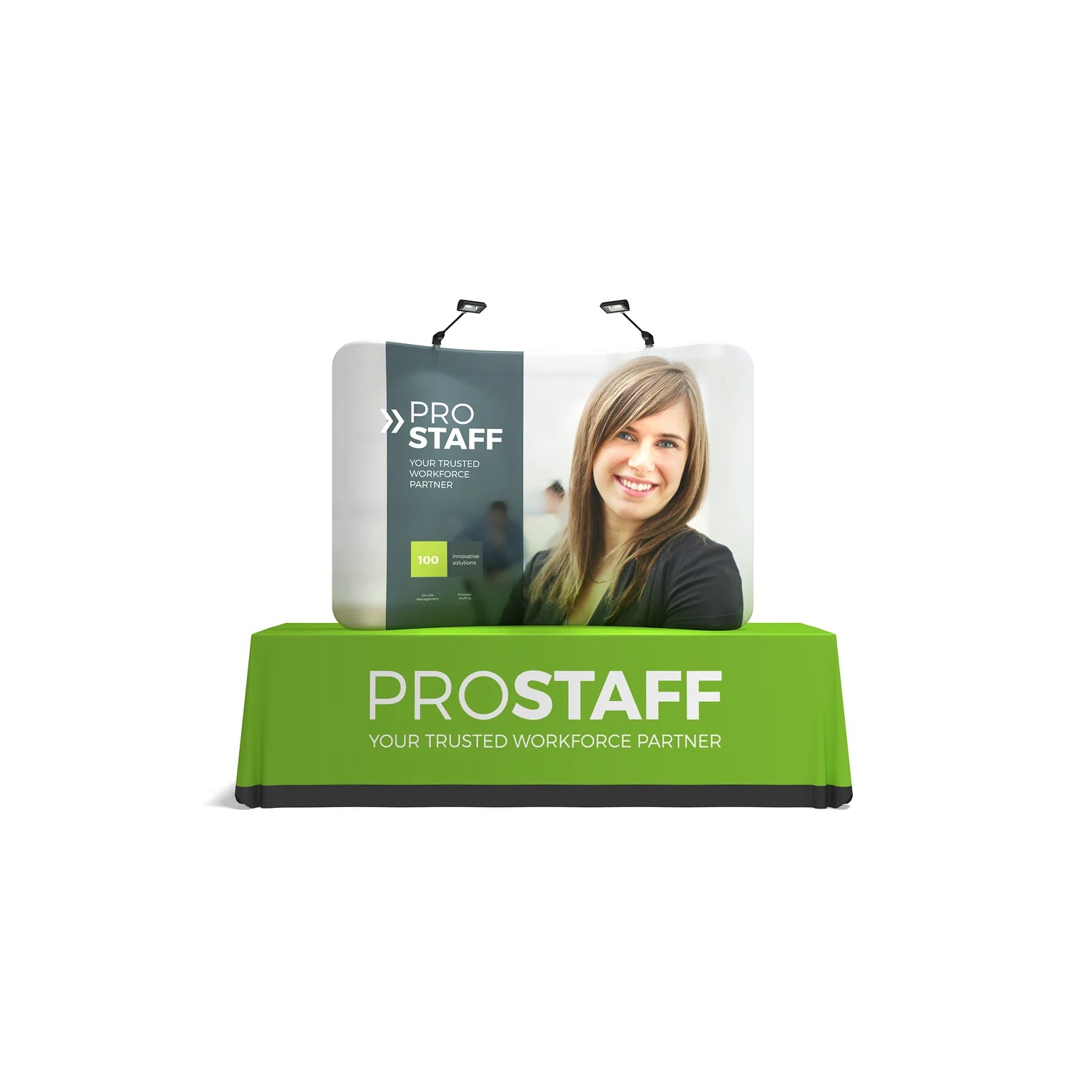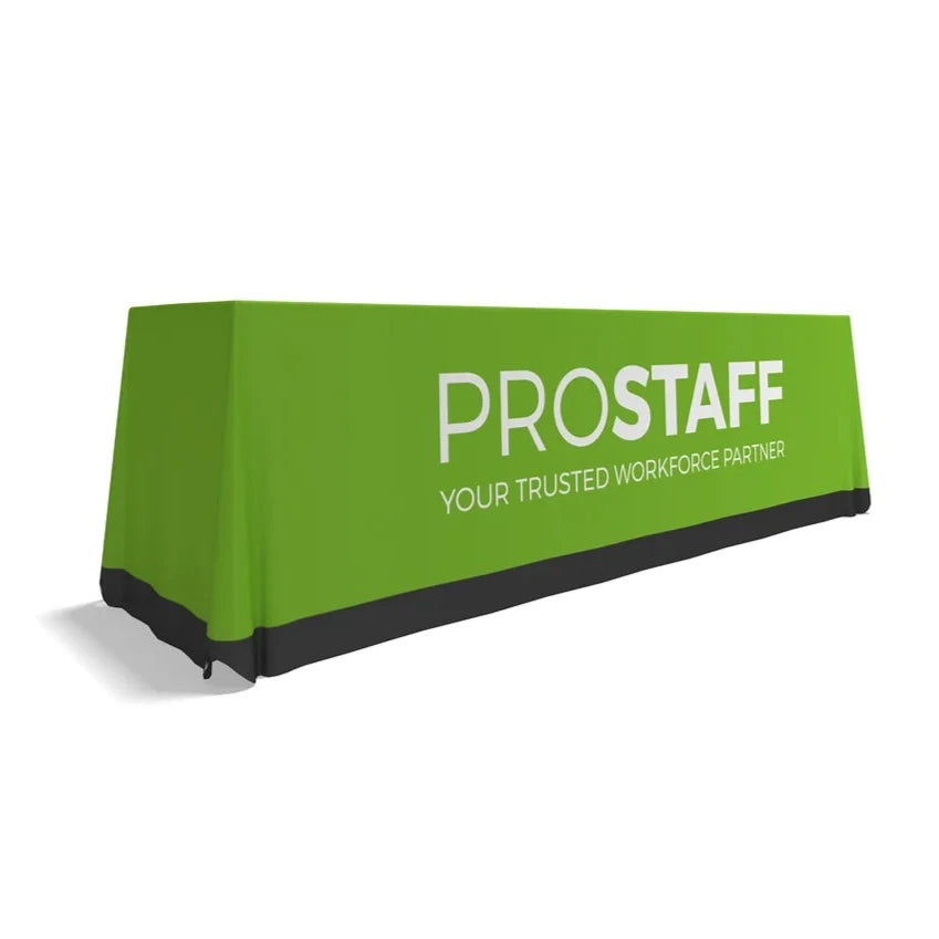 Elevate your event booth with our custom Draped Table Throws. Made from wrinkle-resistant fabric, these durable covers offer a sleek, full-coverage fit for standard 6ft and 8ft tables. Perfect for showcasing your brand logo, they’re easy to set up and available with full color printing, as 3 or 4-sided, ensuring a professional and polished presentation.