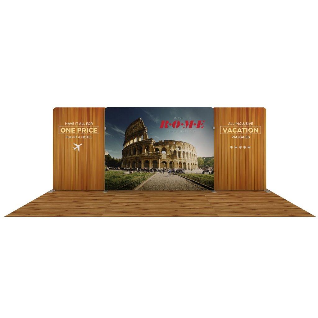 Make a statement with our Waveline Atlantic-A Display. The eye catching, sleek shape and design will give your booth that WOW factor! By flipping one module/panel around, you can completely change the look and feel of your presentation. All Waveline display have durable, lightweight aluminum frames with push-pin connectors. Feet clamps join panels to give stability to the display. Your images are dye-sublimated onto fabrics resulting in high-resolution, fade-resistant graphics, that slip onto frames with ease. The graphics are zipped along the bottom edge of the frame for a wrinkle-free finish. The graphics can also be printed single or double-sided.
