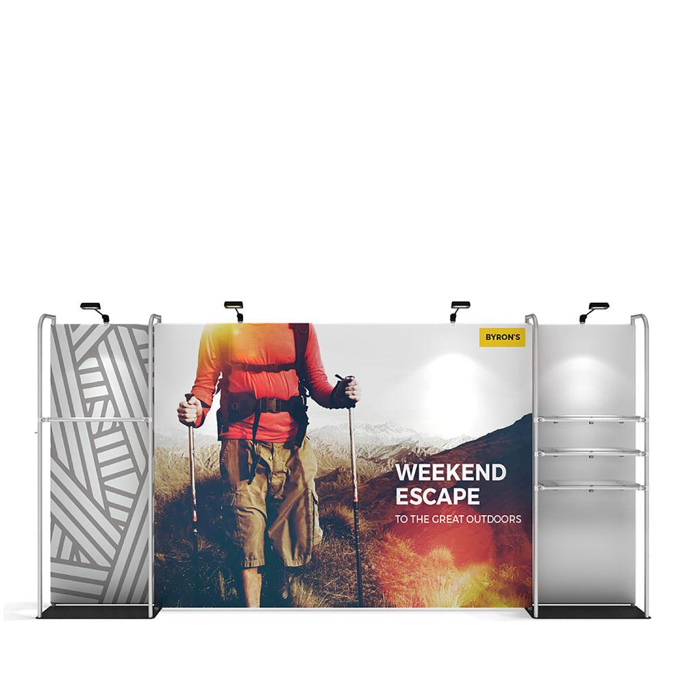 Introducing the WaveLine Merchandiser Master Kit 03 – everything you need to make your brand stand out at your next tradeshow! This awesome display is almost 16 feet in length. Our lightweight aluminum poles with revolutionary modular design give you unmatched customization by allowing you to easily attach shelves, inline monitors, and garment bars. From single-sided to double-sided prints with pillowcase fabric that easily slips over the frame and zips close at its bottom (with zipper hidden from view), WaveLine Merchandiser Master Kit 03 ensures that your event presentation will be remembered. Make an impact wherever you go with this versatile and customizable merchandising system – upgrade your experience now with WaveLine Merchandiser Master Kit 03!