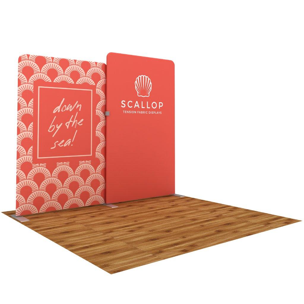 Make a statement with our Waveline Scallop-A Display. The eye catching, sleek shape and design will give your booth that WOW factor! By flipping one module/panel around, you can completely change the look and feel of your presentation. All Waveline display have durable, lightweight aluminum frames with push-pin connectors. Feet clamps join panels to give stability to the display. Your images are dye-sublimated onto fabrics resulting in high-resolution, fade-resistant graphics, that slip onto frames with ease. The graphics are zipped along the bottom edge of the frame for a wrinkle-free finish. The graphics can also be printed single or double-sided.